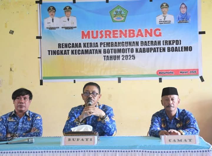 FAKTAPUBLIK.ID – Bupati Boalemo Drs. Rum Pagau secara resmi membuka Musyawarah Perencanaan Pembangunan (Musrenbang) dalam rangka penyusunan Rencana Kerja Pembangunan Daerah (RKPD) tahun 2026 di Kecamatan Mananggu dan Kecamatan Botumoito pada Senin, (17/03/2025). Acara ini turut dihadiri oleh para pimpinan Organisasi Perangkat Daerah (OPD) Kabupaten Boalemo.