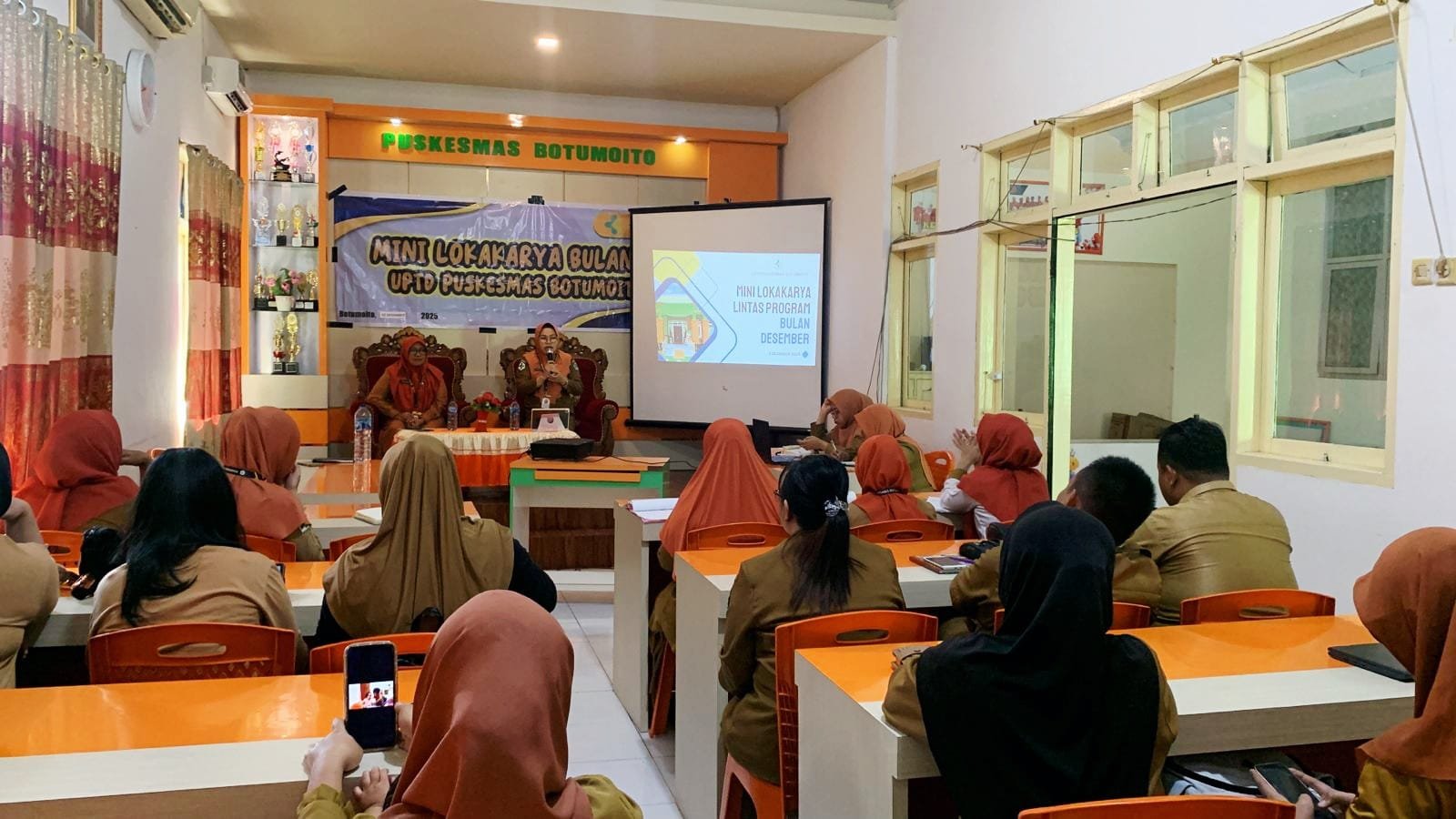 FAKTAPUBLIK.IDMenguatkan koordinasi dan meningkatkan kualitas tata kelola pelayanan kesehatan, UPTD Puskesmas Botumoito menggelar Mini Lokakarya (Minlok) bulanan yang dirangkaikan dengan sosialisasi penerapan aplikasi presensi digital terbaru serta evaluasi capaian program akhir tahun 2025. Kegiatan yang digelar di Aula Puskesmas Botumoito, Selasa (02/12/2025), berlangsung dinamis dan dipimpin langsung oleh Kepala UPTD Puskesmas Botumoito, Israhmawaty Saripi, S.Tr.Kes.