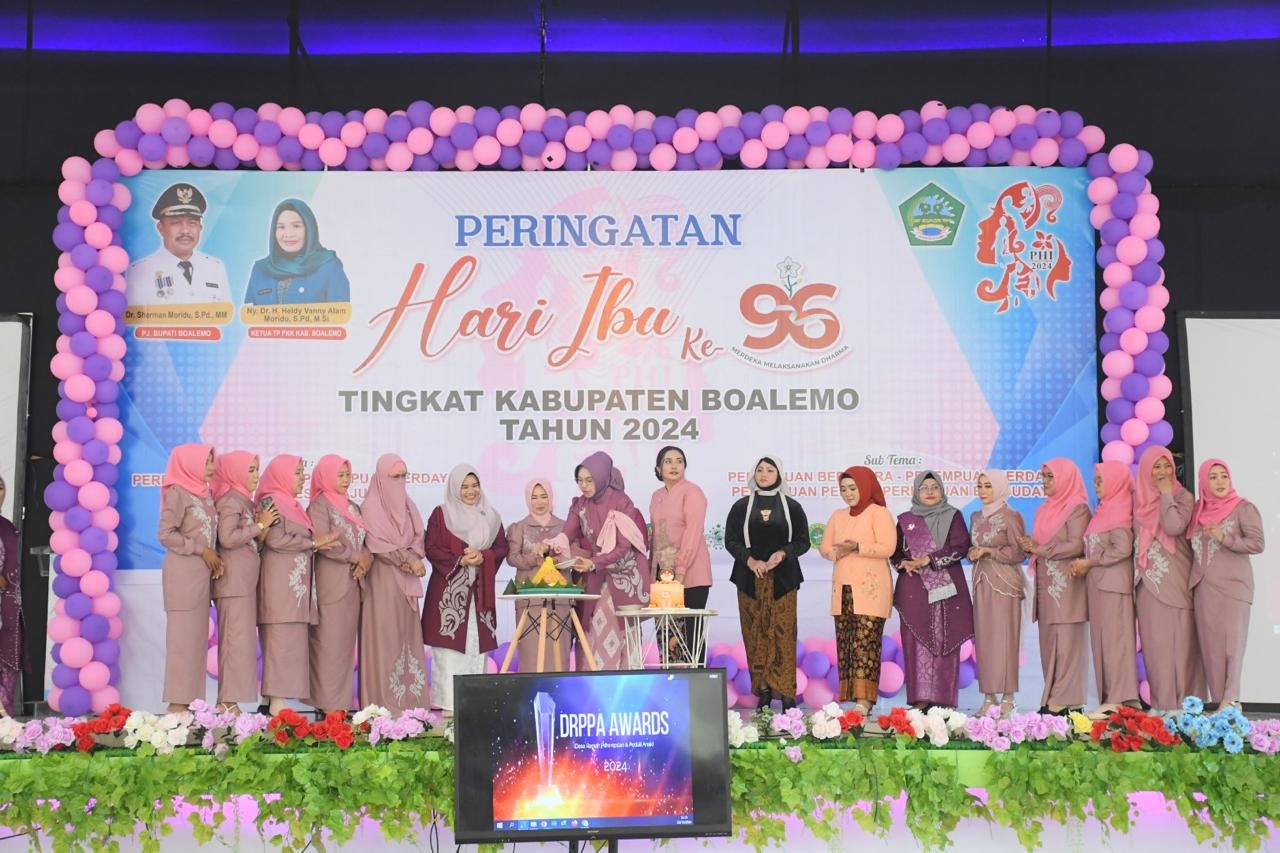 FAKTAPUBLIK.ID – Peringatan Hari Ibu ke-96 tingkat Kabupaten Boalemo berlangsung dengan penuh khidmat di Graha Afifah pada Senin (23/12/2024). Acara tersebut menjadi momentum penghargaan atas kontribusi perempuan dalam pembangunan daerah dan nasional.