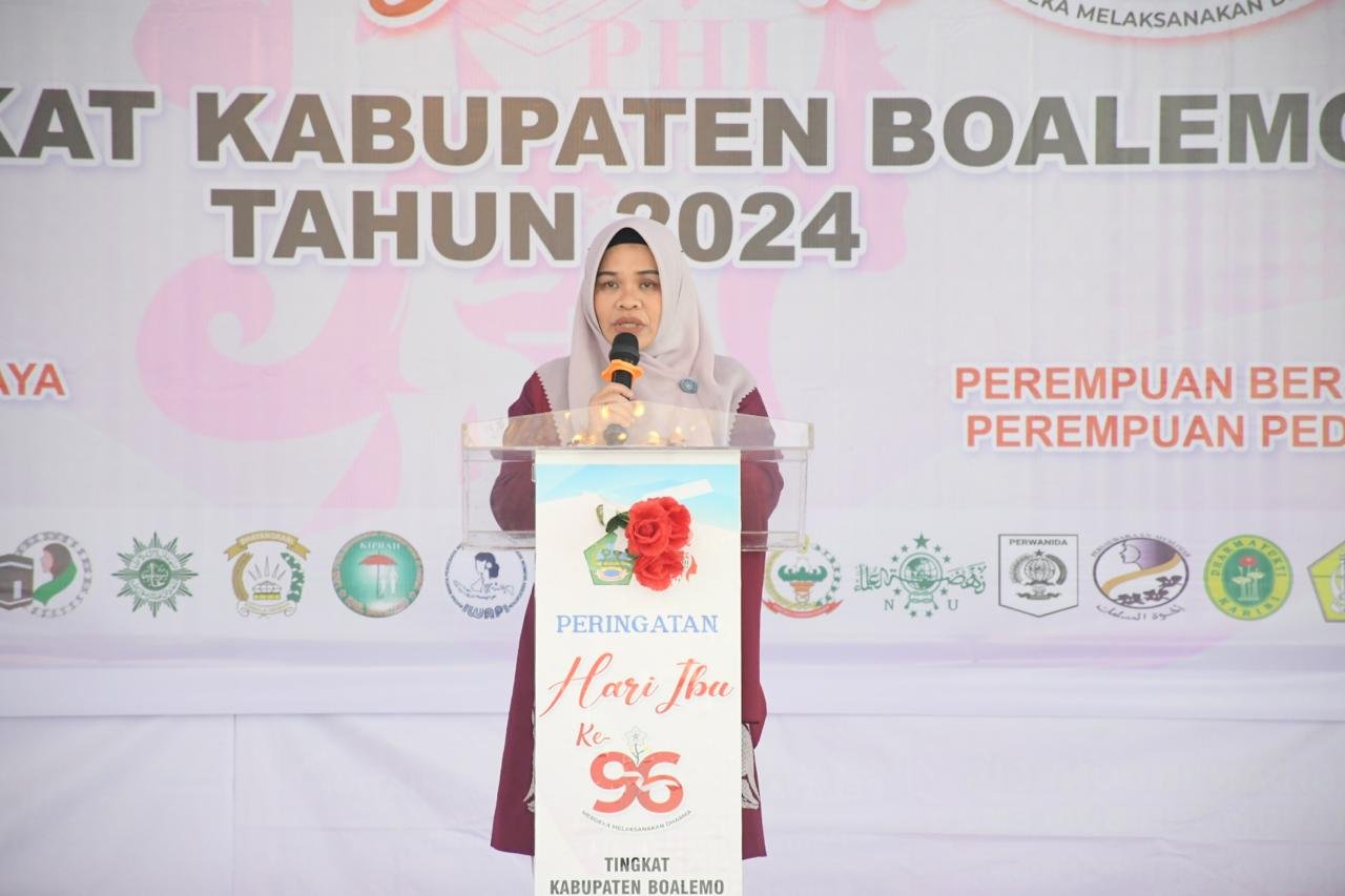 Ketua Tim Penggerak PKK Kabupaten Boalemo, Dr. Heldy Vanni Alam, S.Pd., M.Si., dalam sambutannya menekankan pentingnya Hari Ibu sebagai refleksi atas perjuangan dan kontribusi perempuan. Ia menyebutkan bahwa peringatan ini tidak hanya mengenang sejarah, tetapi juga mendorong pemberdayaan perempuan di berbagai bidang kehidupan.