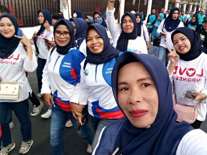 Kepala Dinas Lingkungan Hidup dan Perhubungan Kabupaten Boalemo,Ir. Roswita Novia Is.Manto tampak berjalan berada dibarisan paling depan mendahului ratusan peserta lainnya didampingi oleh sejumlah pegawai tetap Dinas Lingkungan Hidup dan Perhubungan Kabupaten Boalemo.