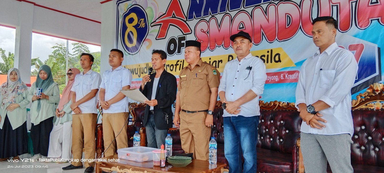 Dengan terselenggaranya HUT ke – 8 SMA Negeri 2 Tilamuta, Kepala Sekolah Dr. Laode Sultan menyampaikan terima kasih kepada semua pihak,masyarakat dan Pemerintah Desa Pangi yang telah memberikan kepercayaan dengan menyediakan tempat untuk pelaksanaan kegiatan.