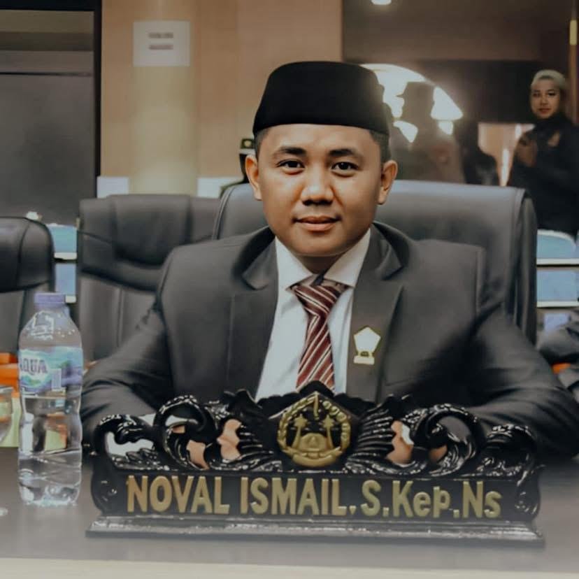 Anggota legislatif (Aleg) Noval Ismail, yang juga kader Partai Nasdem, turut memberikan ucapan selamat kepada pasangan Rum Pagau-Lahmudin Hambali.