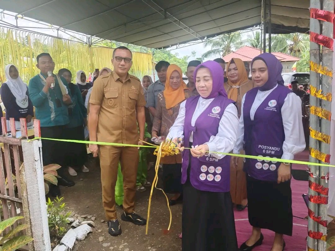 Launching implementasi Posyandu 6 SPM ini ditandai dengan pengguntingan pita oleh Ketua TP PKK Kabupaten Boalemo, Ny. Hartati Moha Pagau, S.Pd., M.Si, selaku Ketua Tim Pembina Posyandu Kabupaten Boalemo, dan disaksikan langsung oleh Wakil Bupati Boalemo, Wakil Ketua TP PKK Kabupaten Boalemo Ny. Rina Sarkam Hambali, ST, Camat Dulupi Raplin Kamumu, SE, para kepala desa, serta masyarakat setempat. (Ly)
