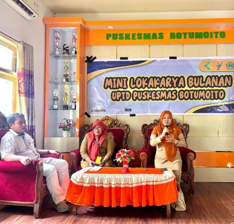 FAKTAPUBLIK.ID — UPTD Puskesmas Botumoito kembali melaksanakan kegiatan Mini Lokakarya (Minlok) Bulanan Lintas Program, Selasa (4/11/2025). Kegiatan rutin ini dipimpin langsung oleh Kepala Puskesmas Botumoito, Israhmawaty Saripi, S.Tr.Kes, dan diikuti oleh seluruh penanggung jawab program serta staf Puskesmas.
