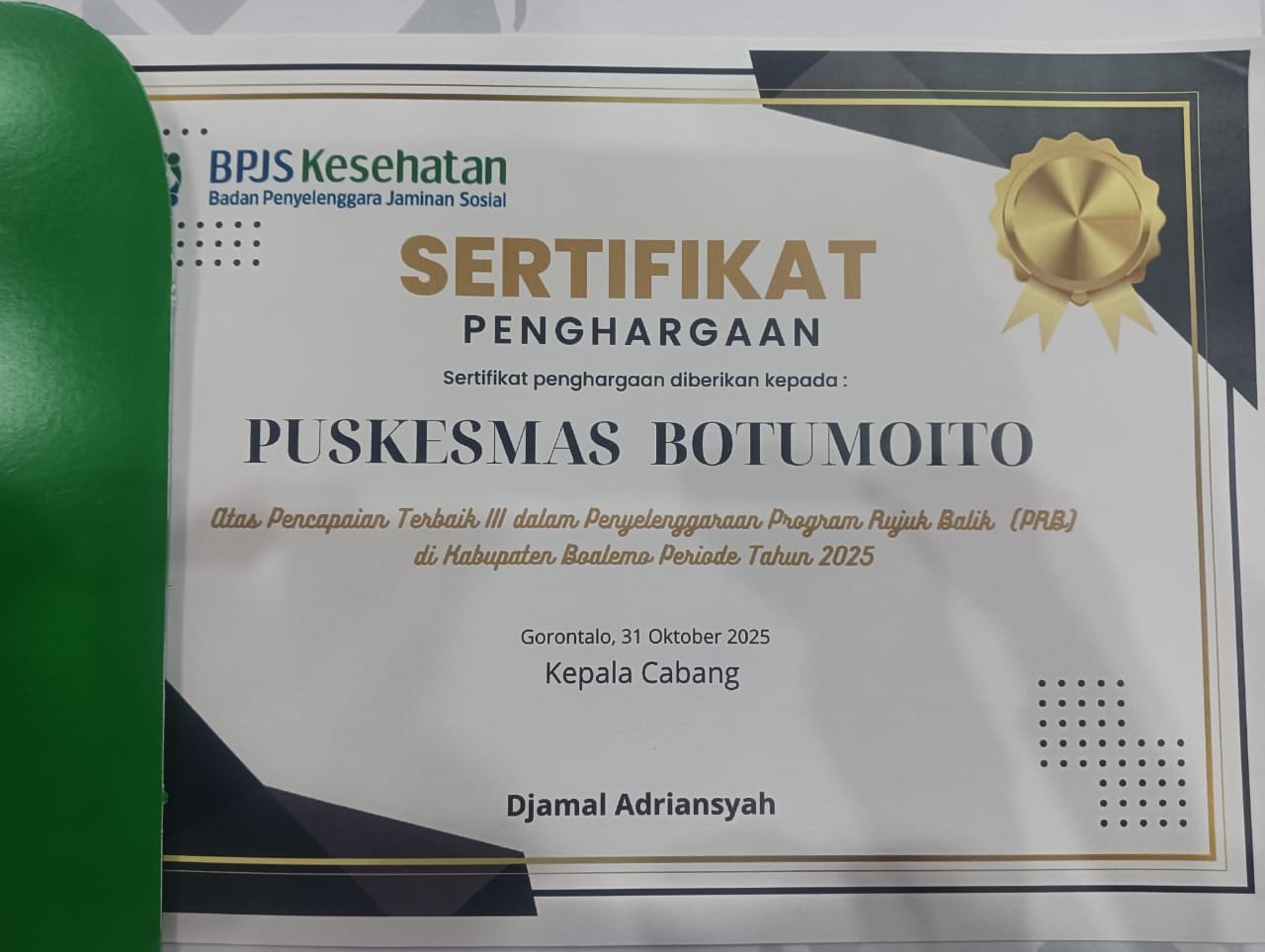 Tekad itu kembali terwujud pada Jumat, 31 Oktober 2025, saat Puskesmas Botumoito berhasil meraih peringkat Terbaik III dalam Penyelenggaraan Program Rujuk Balik (PRB) tingkat Kabupaten Boalemo.