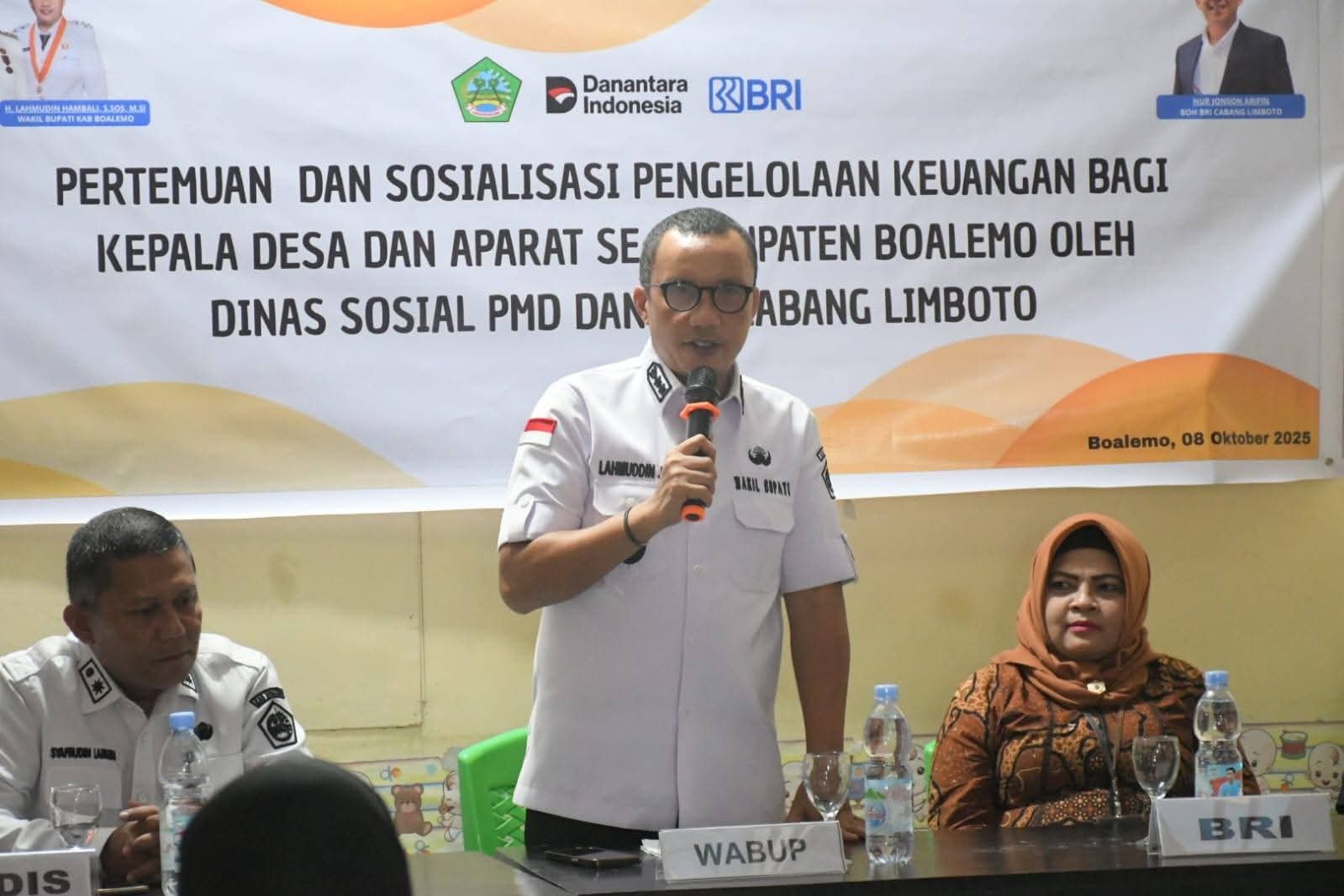 FAKTAPUBLIK.ID — Wakil Bupati Boalemo, Lahmudin Hambali, S.Sos, M.Si, memberikan pembinaan kepada seluruh Kepala Desa dan Bendahara Desa se-Kabupaten Boalemo, terkait pemindahan Rekening Kas Umum Desa (RKUDES) ke Bank Rakyat Indonesia (BRI).